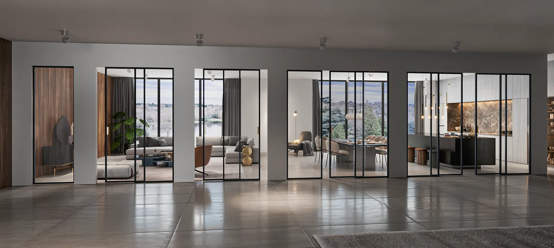 Tvoříme jedinečná prostorová řešení otevírající nové designové možnosti a posouvající hranice vnímání interiéru. Vyrábíme prosklené industriální stěny, skryté zárubně a prémiové dveřní systémy, které podporují kreativní architektonické vize a dodávají prostoru esteticky čistý, nadčasový výraz.